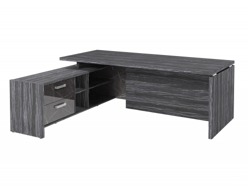 Столешница, бок стола и бок тумбы выполнены из ЛДСП толщиной 38 мм. Цвет - "Древесина Графит". Кромка 2 мм.