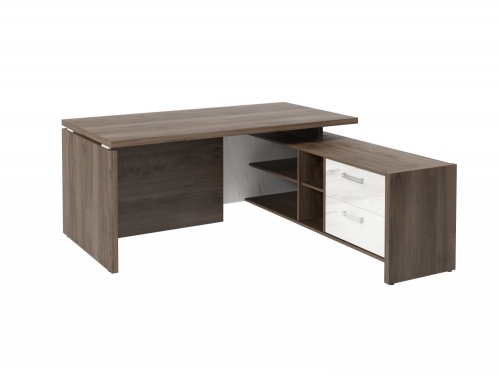 Столешница, бок стола и бок тумбы выполнены из ЛДСП толщиной 38 мм. Цвет - "Орех Пацифик Табак". Кромка 2 мм.
