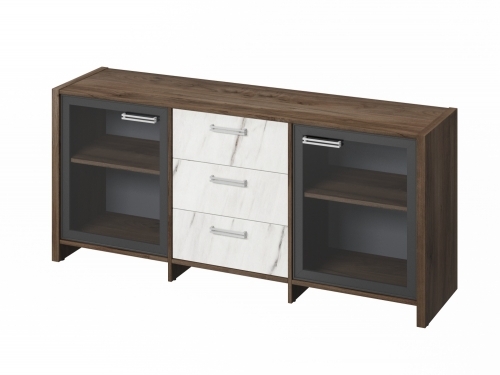 Тумба трехсекционная с 2 дверьми FB-13-02.G. Орех Пацифик Табак/Мрамор Леванто белый