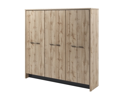 Шкаф трехсекционный с 5 полками в каждой секции.